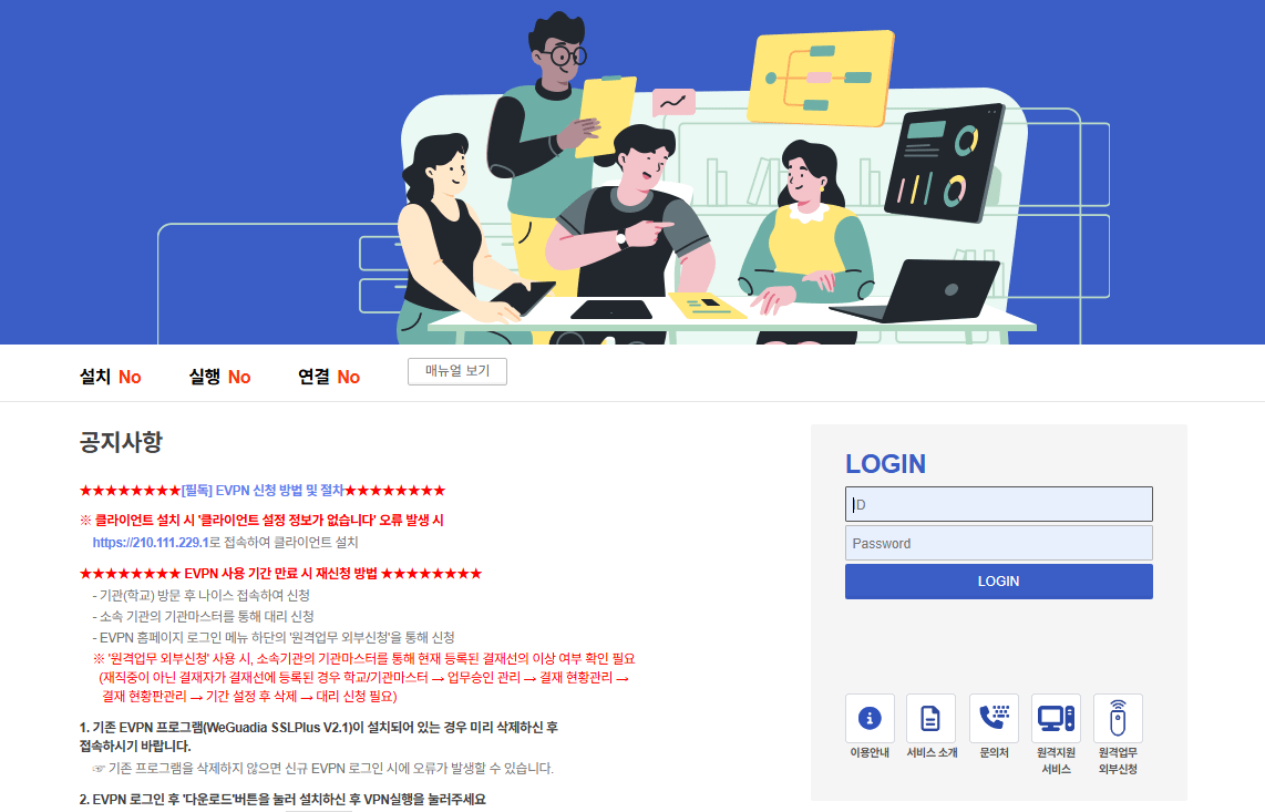 eVPN 서비스를 이용하기 위해서는 사전에 신청 및 승인이 필요합니다. 신청 절차는 다음과 같습니다.