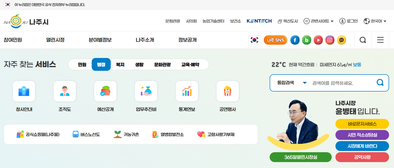 나주시청 홈페이지의 특별한 서비스