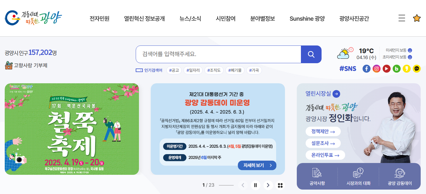 광양시청 홈페이지 : 광양시의 다양한 정보와 서비스를 한곳에서 확인하기