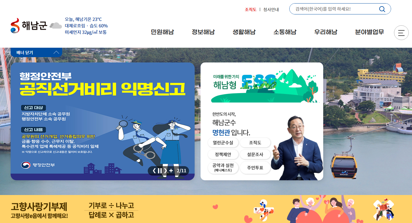 해남군청 홈페이지 : 해남의 행정 서비스와 정보 제공의 중심