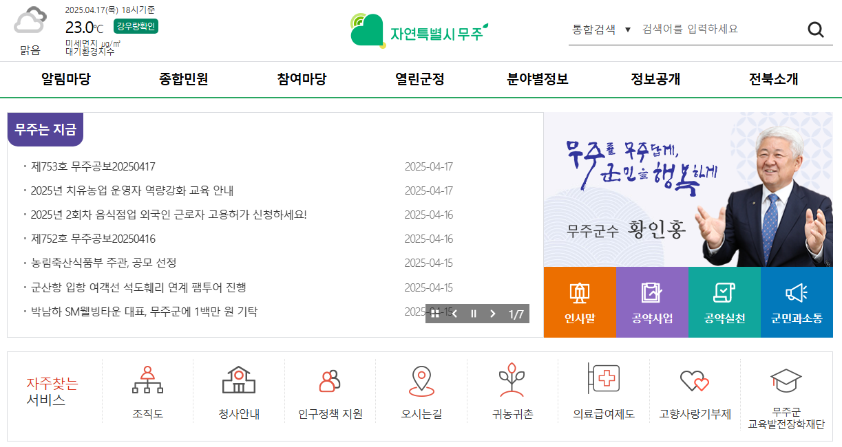 무주군청 홈페이지 : 무주의 행정 서비스와 정보 제공의 중심