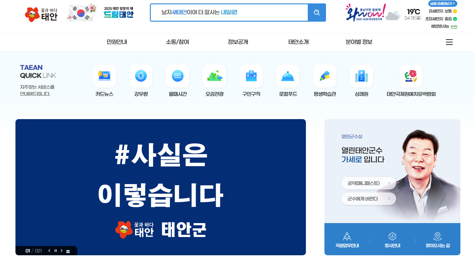 태안군청 홈페이지 : 군민을 위한 효율적이고 편리한 온라인 행정 서비스
