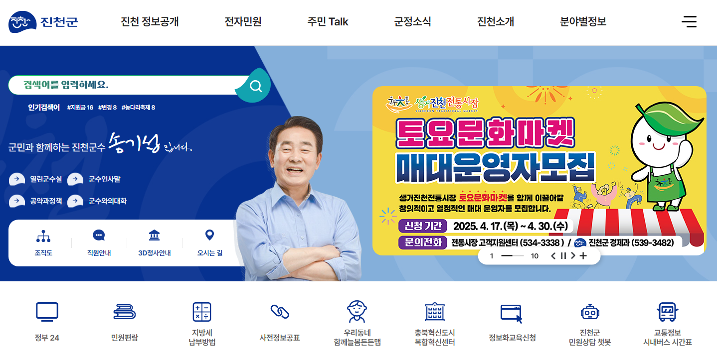 진천군청 홈페이지 : 군민을 위한 효율적이고 편리한 온라인 행정 서비스