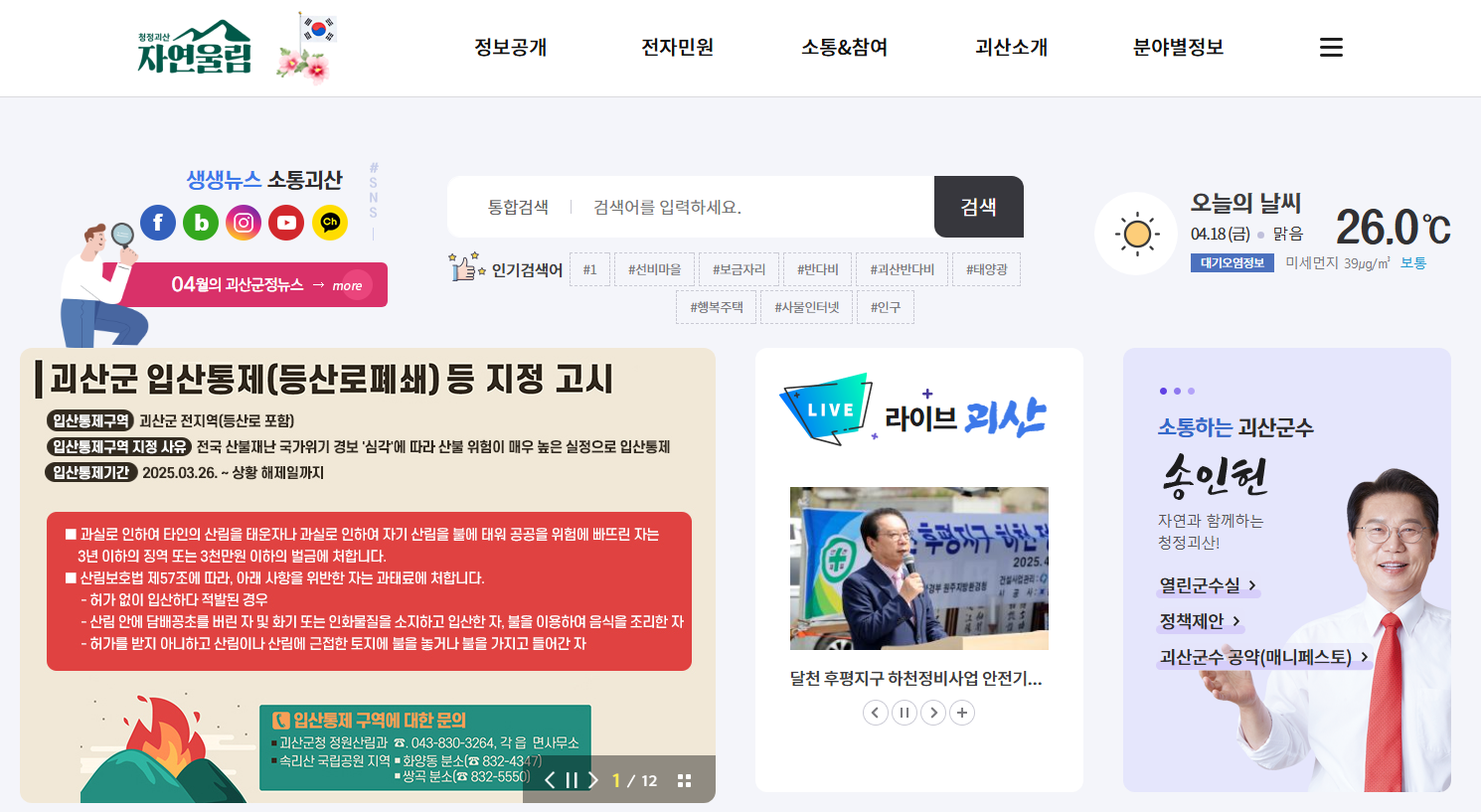 괴산군청 홈페이지 : 군민을 위한 편리하고 효율적인 온라인 행정 서비스