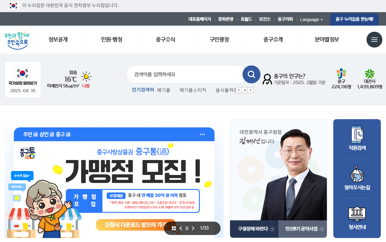 대전 중구청 홈페이지 : 역사와 문화가 살아 숨 쉬는 중심도시의 디지털 행정 플랫폼