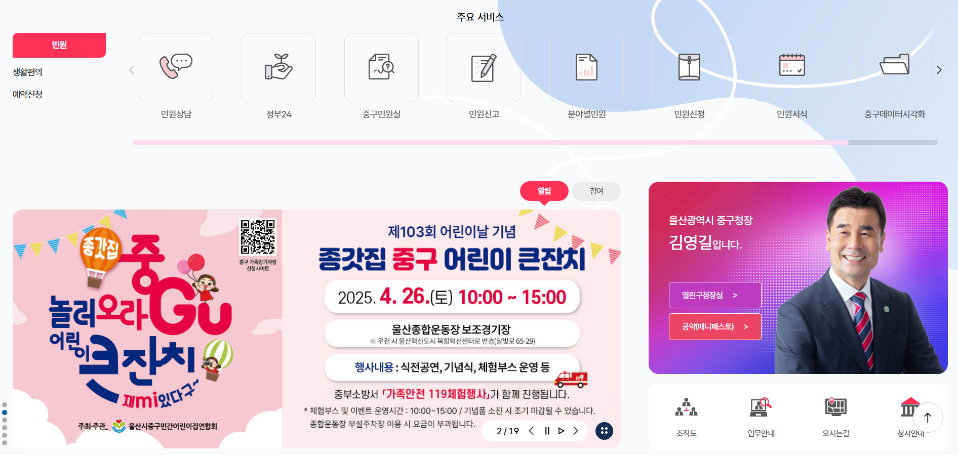 울산 중구청 홈페이지의 주요 기능