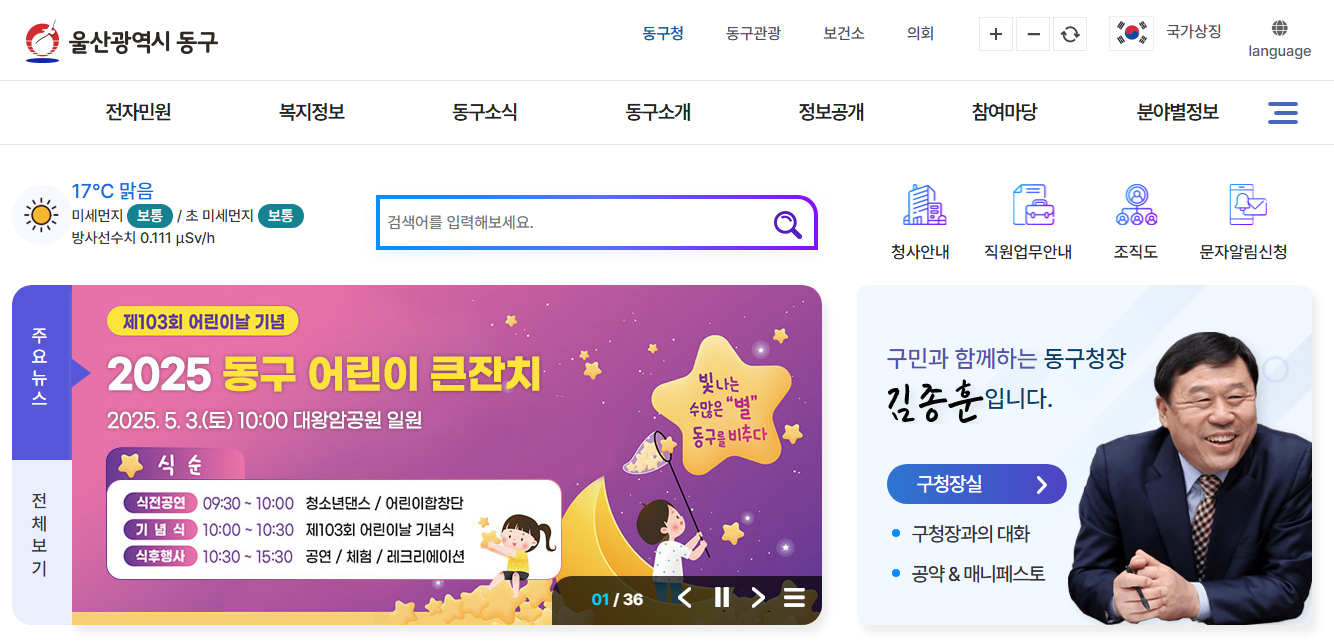 울산 동구청 홈페이지 : 조선해양도시의 디지털 행정 중심, 울산 동구의 스마트 포털