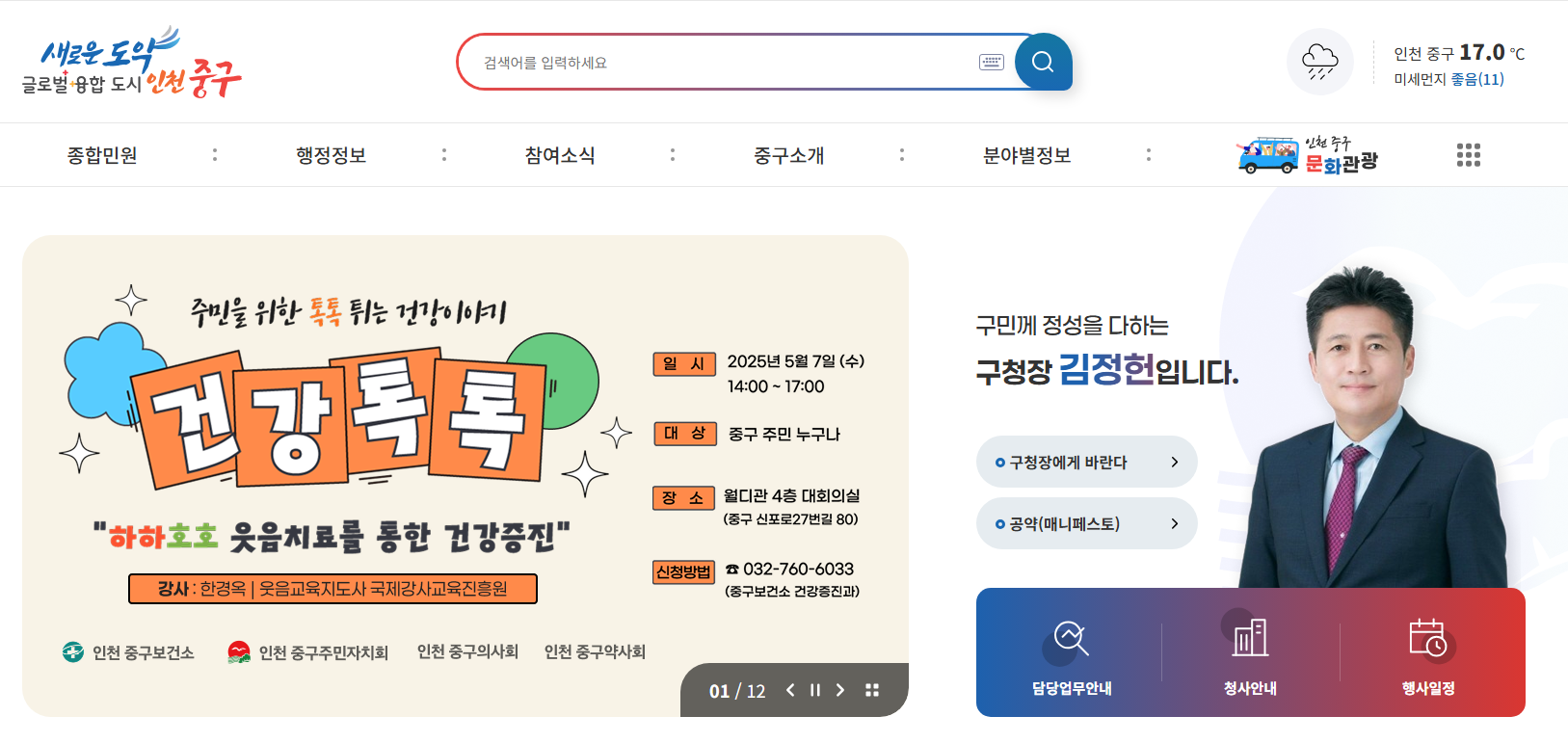 인천 중구청 홈페이지 : 항구도시 인천 중구의 스마트 행정 플랫폼