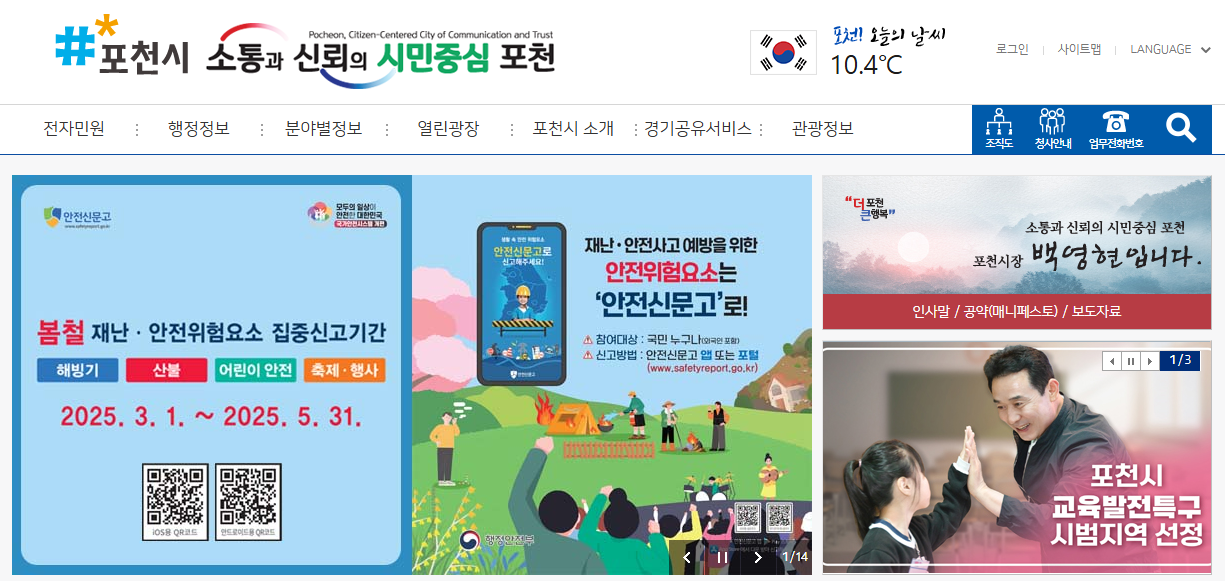 포천시청 홈페이지 : 시민과 함께하는 스마트 행정의 디지털 창구