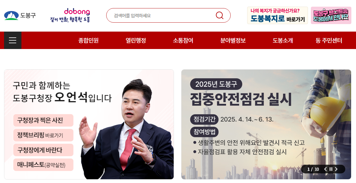 도봉구청 홈페이지 : 구민과 소통하는 생활 밀착형 디지털 행정 플랫폼
