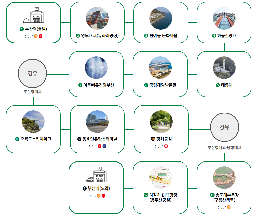 부산 시티투어 버스는 크게 4개의 주요 노선으로 운영되고 있습니다. 각 노선은 부산의 다양한 명소를 효율적으로 연결하여 관광객들이 부산의 매력을 최대한 경험할 수 있도록 설계되었습니다.