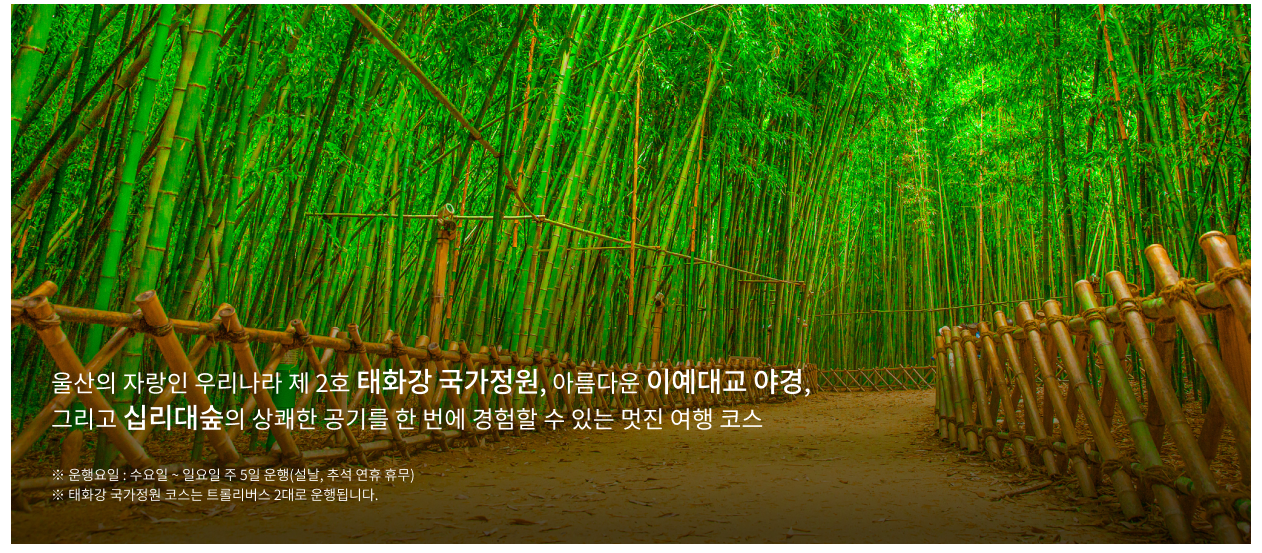 - 탑승 장소: 울산시티투어버스 탑승장소는 태화강역 3번 정류장입니다. KTX 울산역이 아닌 태화강역이라는 점을 확인해주세요.