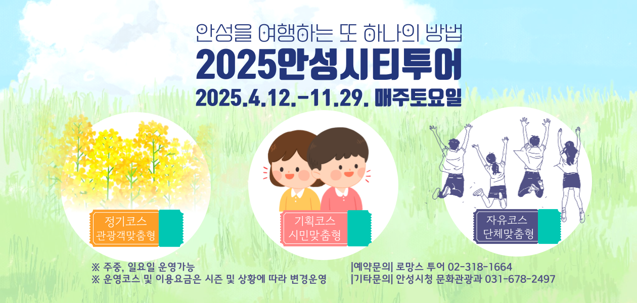 안성 시티투어는 다음 채널을 통해 예약할 수 있습니다.