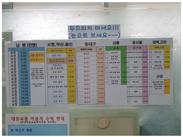울진 시외버스터미널 시간표 조회
