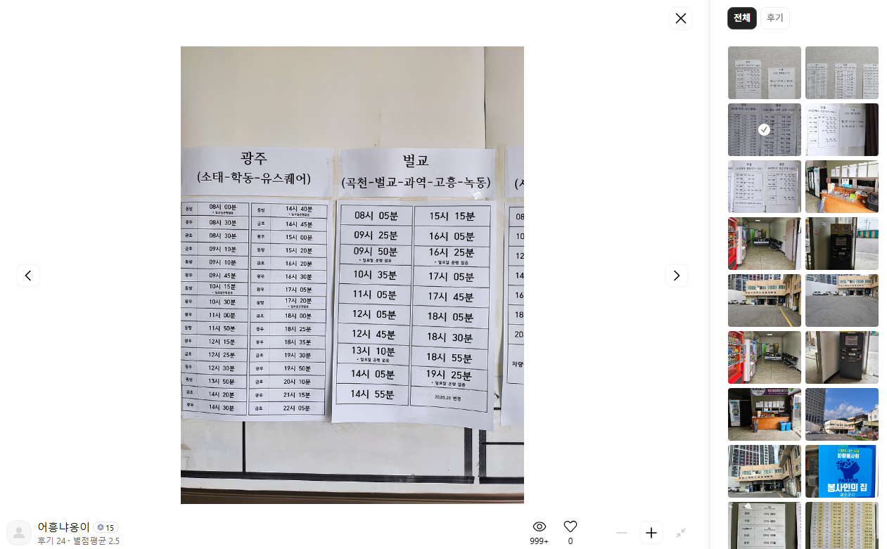 화순 시외버스터미널 시간표 조회