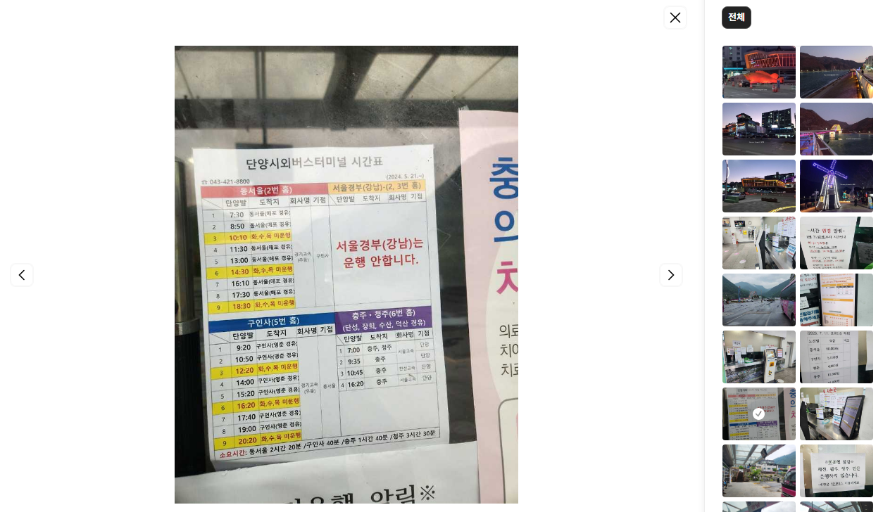 단양 시외버스터미널 시간표 조회