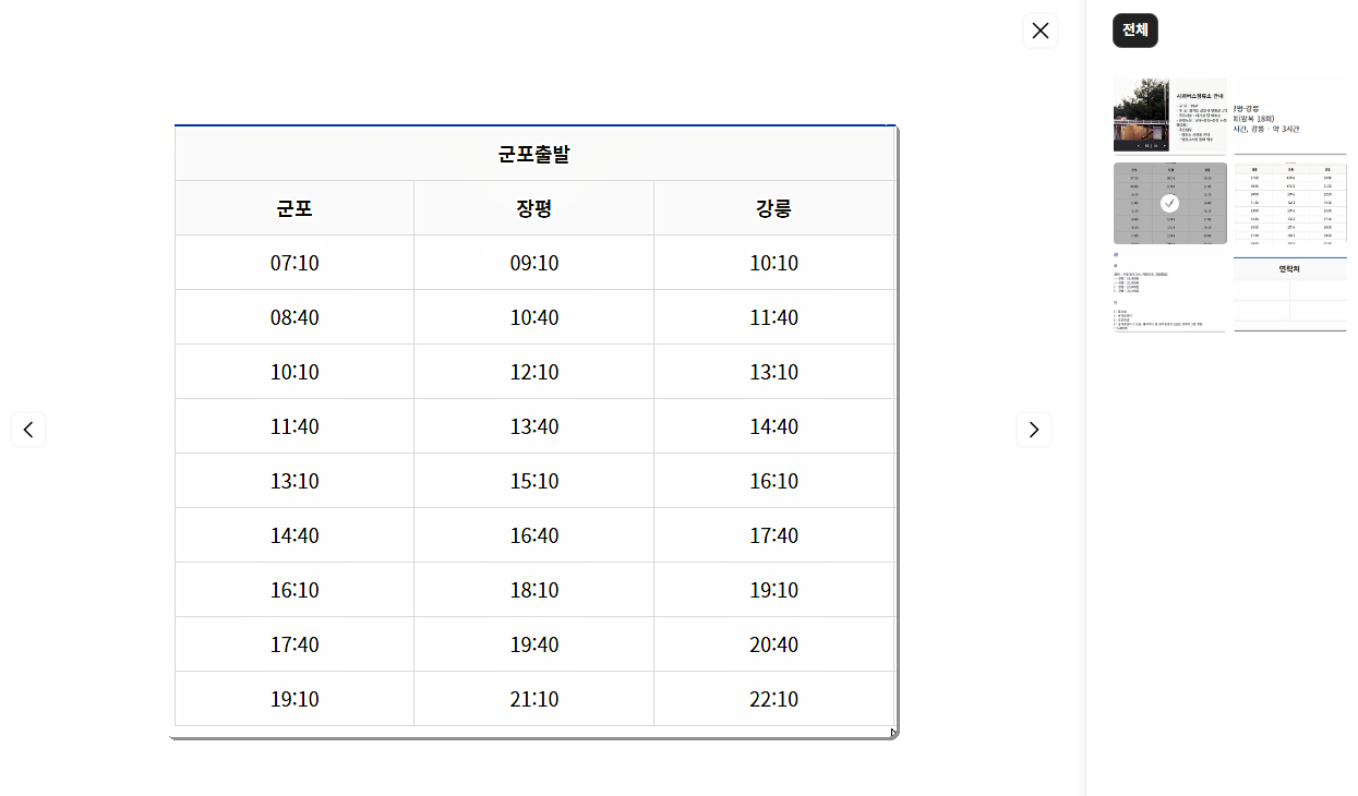 - 네이버나 카카오맵과 같은 지도 서비스에서 "군포 시외버스터미널" 검색 후 시간표 확인