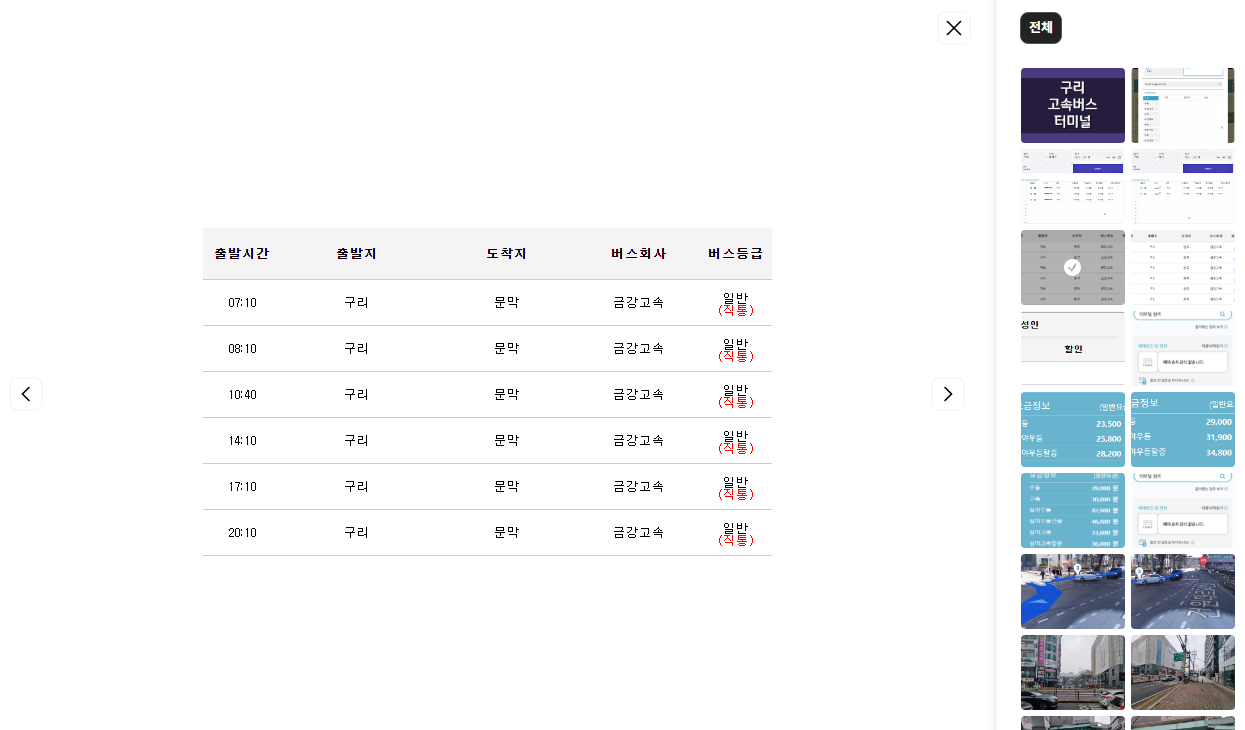 구리 시외버스터미널 시간표 조회