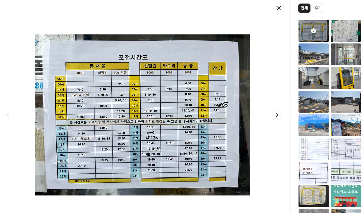 - 네이버나 카카오맵과 같은 지도 서비스에서 "포천 시외버스터미널" 검색 후 시간표 확인
