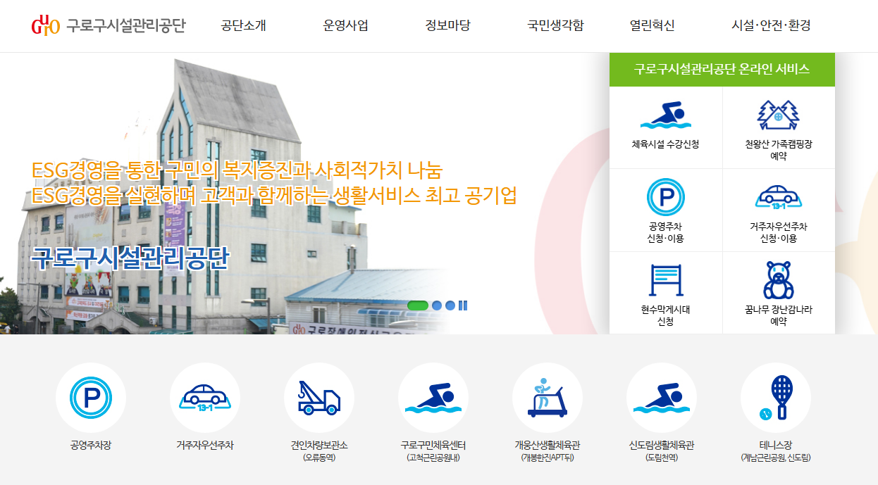 - 구로구 시설관리공단 홈페이지에 접속합니다.