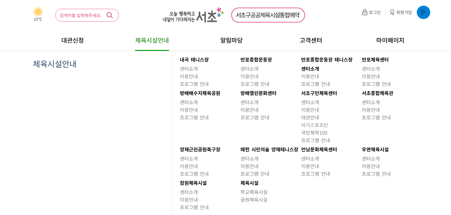 서초구 체육시설 통합예약 시스템 소개