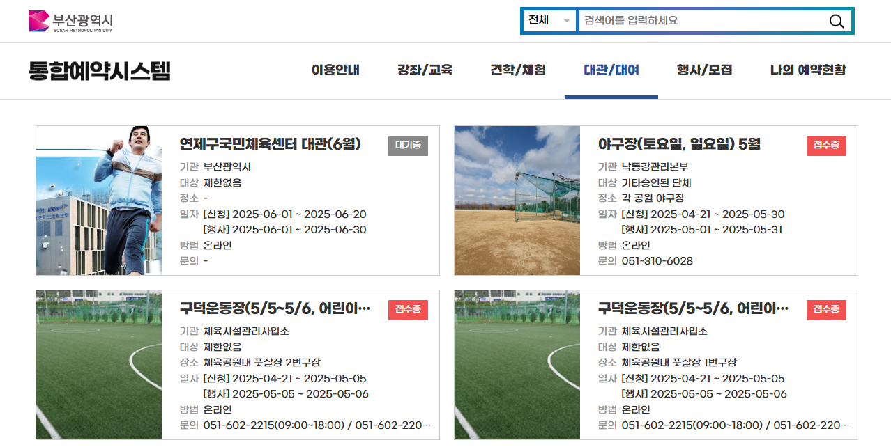 부산광역시 체육시설관리사업소에서 운영하는 통합예약 시스템은 강서체육공원, 구덕운동장, 삼락생태공원 등 부산 전역의 주요 체육시설을 한 곳에서 예약할 수 있도록 지원합니다. 축구장, 테니스장, 풋살장, 수영장 등 다양한 시설을 온라인으로 간편하게 신청할 수 있어 이용자 편의성이 크게 향상되었습니다.