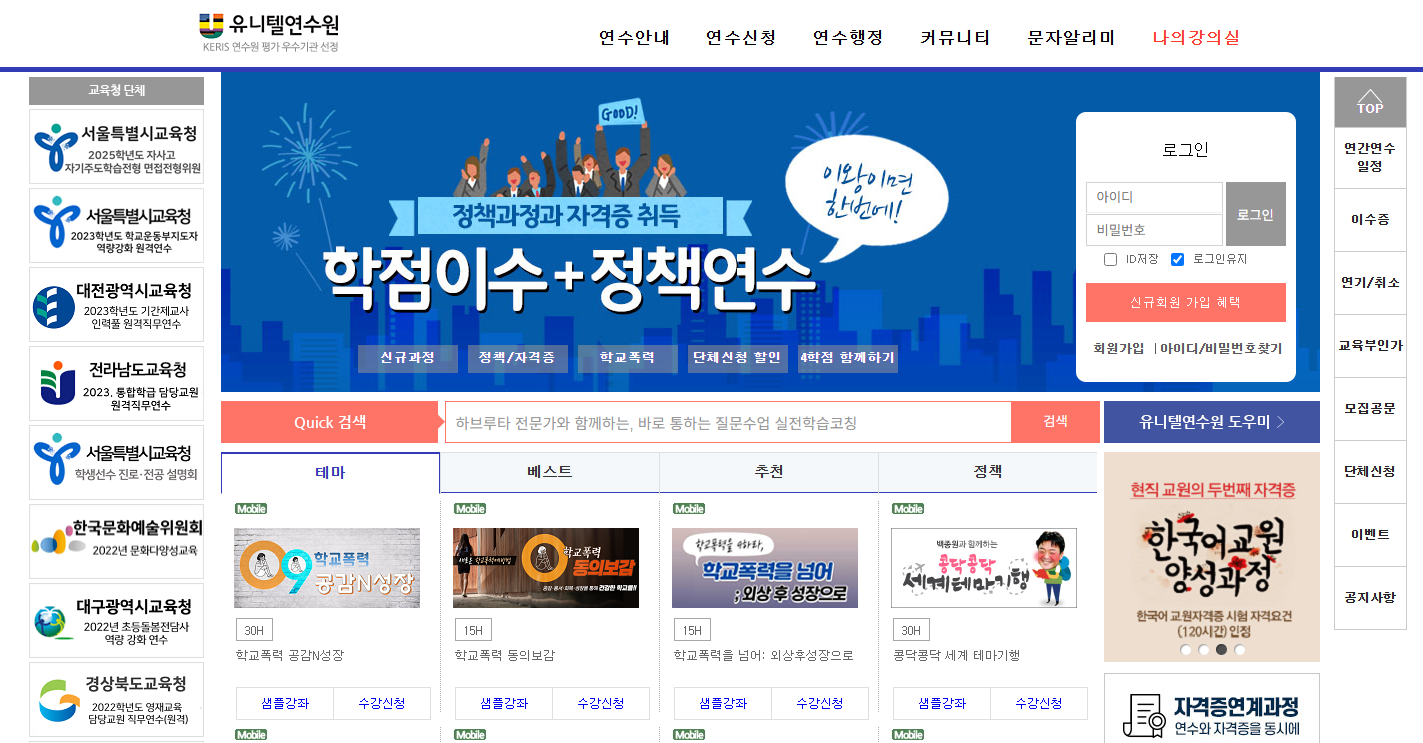 유니텔 원격교육연수원 홈페이지의 주요 특징