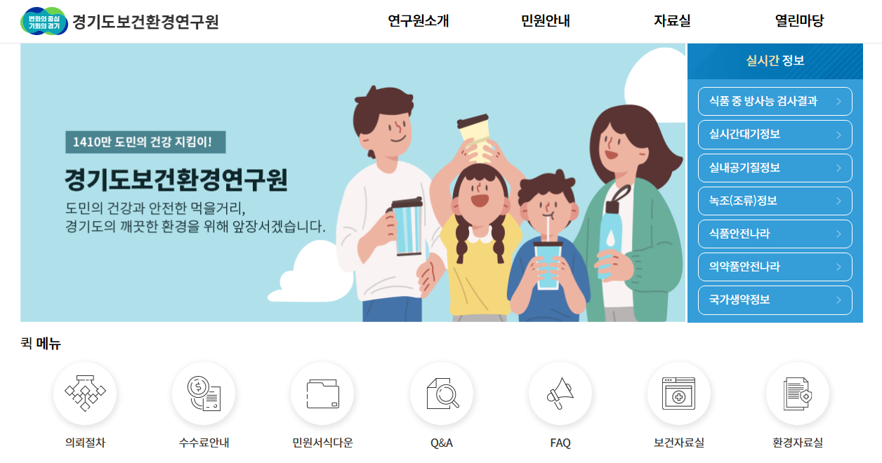 경기도보건환경연구원은 앞으로도 도민의 건강과 안전한 먹을거리, 그리고 경기도의 깨끗한 환경을 위해 최선을 다할 것입니다.