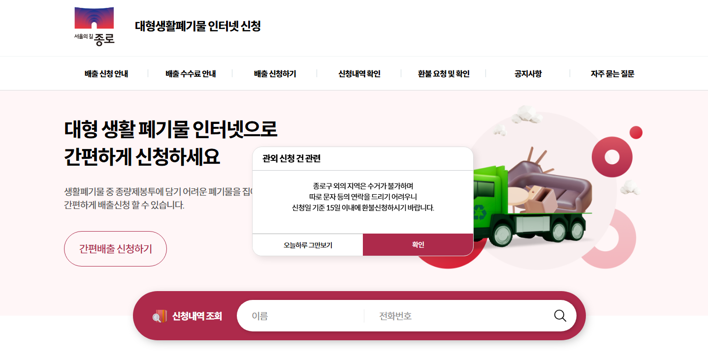 서울시 종로 지역 대형폐기물 배출 신고는 매우 간편합니다.