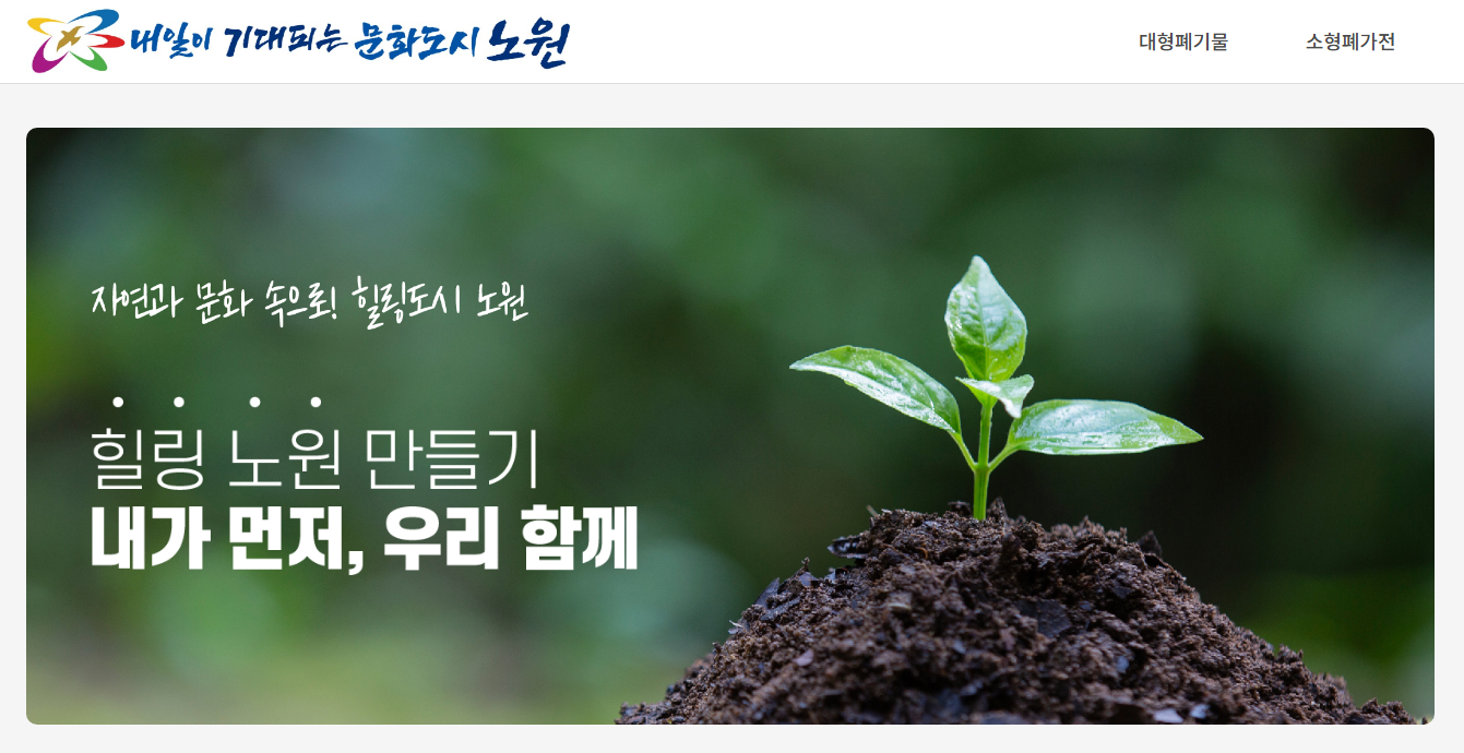 - 노원구청 홈페이지 접속: 노원구청 홈페이지에 접속하여 '자주찾는 서비스' 메뉴에서 '대형생활폐기물'을 선택하거나, 대형생활폐기물 인터넷 신청 사이트로 바로 접속합니다.