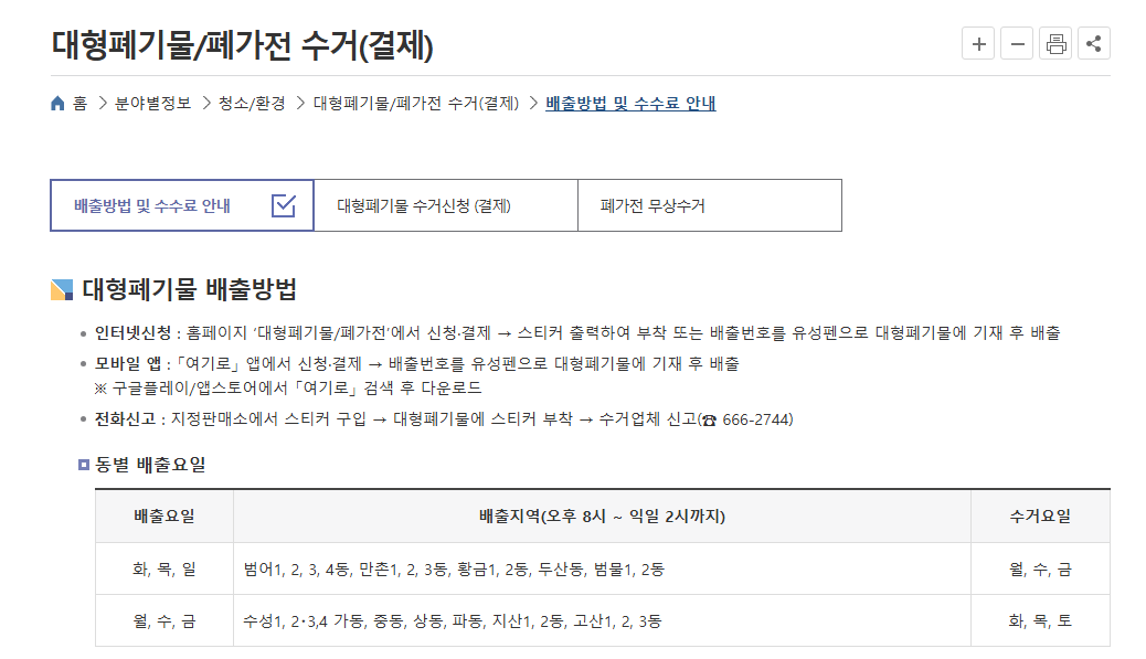 대구 수성구 대형폐기물 스티커 인터넷발급 신고 수거 신청 수수료 가격