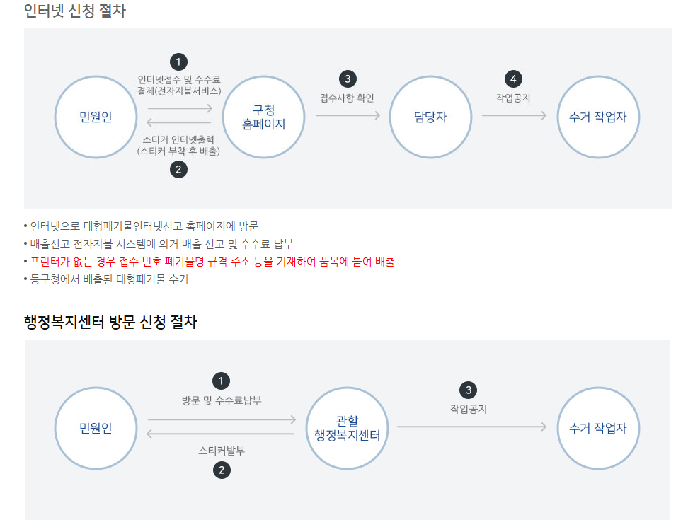 대전 동구 대형폐기물 스티커 인터넷발급 신고 수거 신청 수수료 가격