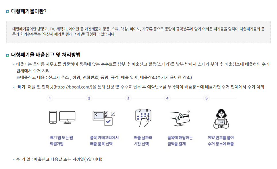 익산시 대형폐기물 스티커 인터넷발급 신고 수거 신청 수수료 가격