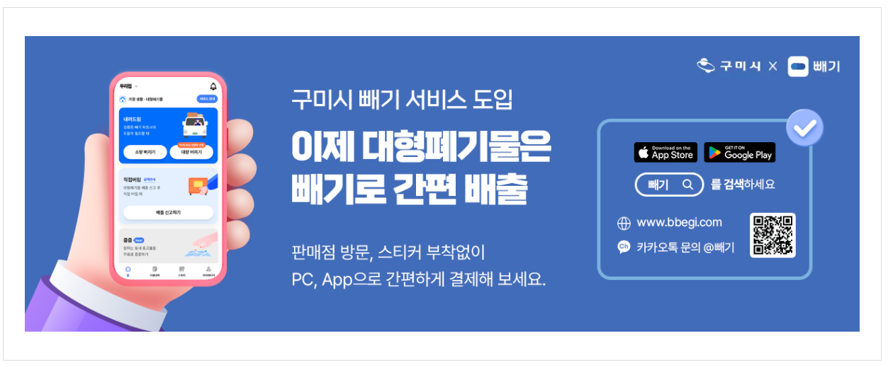 구미시의 대형폐기물 인터넷 신고 시스템을 이용하면 시간과 장소에 구애받지 않고 편리하게 폐기물을 처리할 수 있습니다. 올바른 배출 방법을 통해 깨끗한 구미를 만드는 데 동참해 주시기 바랍니다.